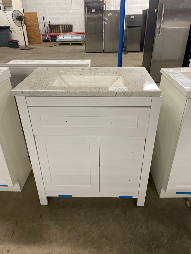 Clady 31 in. W x 19 in. D x 35 in. H Single Sink Freestanding Bath Vanity in White with Silver Ash Cultured Marble Top