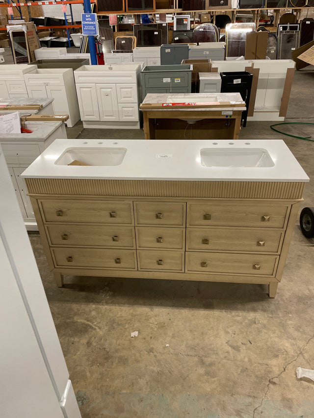 Danby 60 in. Double Sink Platinum Oak Bath Vanity with White Engineered Marble Top (Assembled) is backordered and will ship as soon as it is back in stock.
