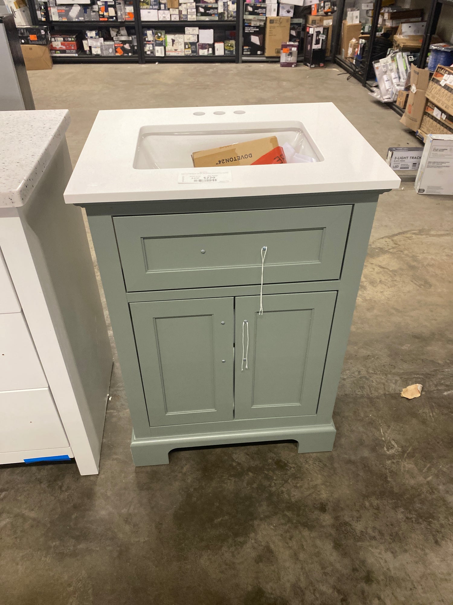 Doveton 24 in. Single Sink Sage Green Bath Vanity with White Engineered Stone Top (Assembled) is backordered and will ship as soon as it is back in stock.