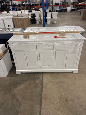 Doveton 60 in. W x 19 in. D x 34.50 in. H Bath Vanity in White with White Cultured Marble Top is backordered and will ship as soon as it is back in stock.