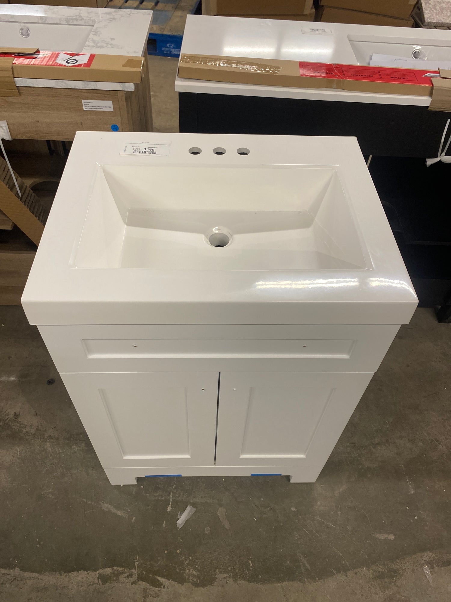 Everdean 25 in. W x 19 in. D x 34 in. H Single Sink Freestanding Bath Vanity in White with White Cultured Marble Top is backordered and will ship as soon as it is back in stock.