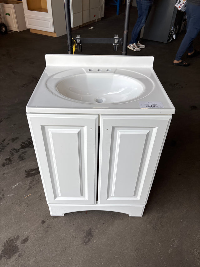 Everdean 25 in. W x 19 in. D x 34 in. H Single Sink Freestanding Bath Vanity in White with White Cultured Marble Top is backordered and will ship as soon as it is back in stock.