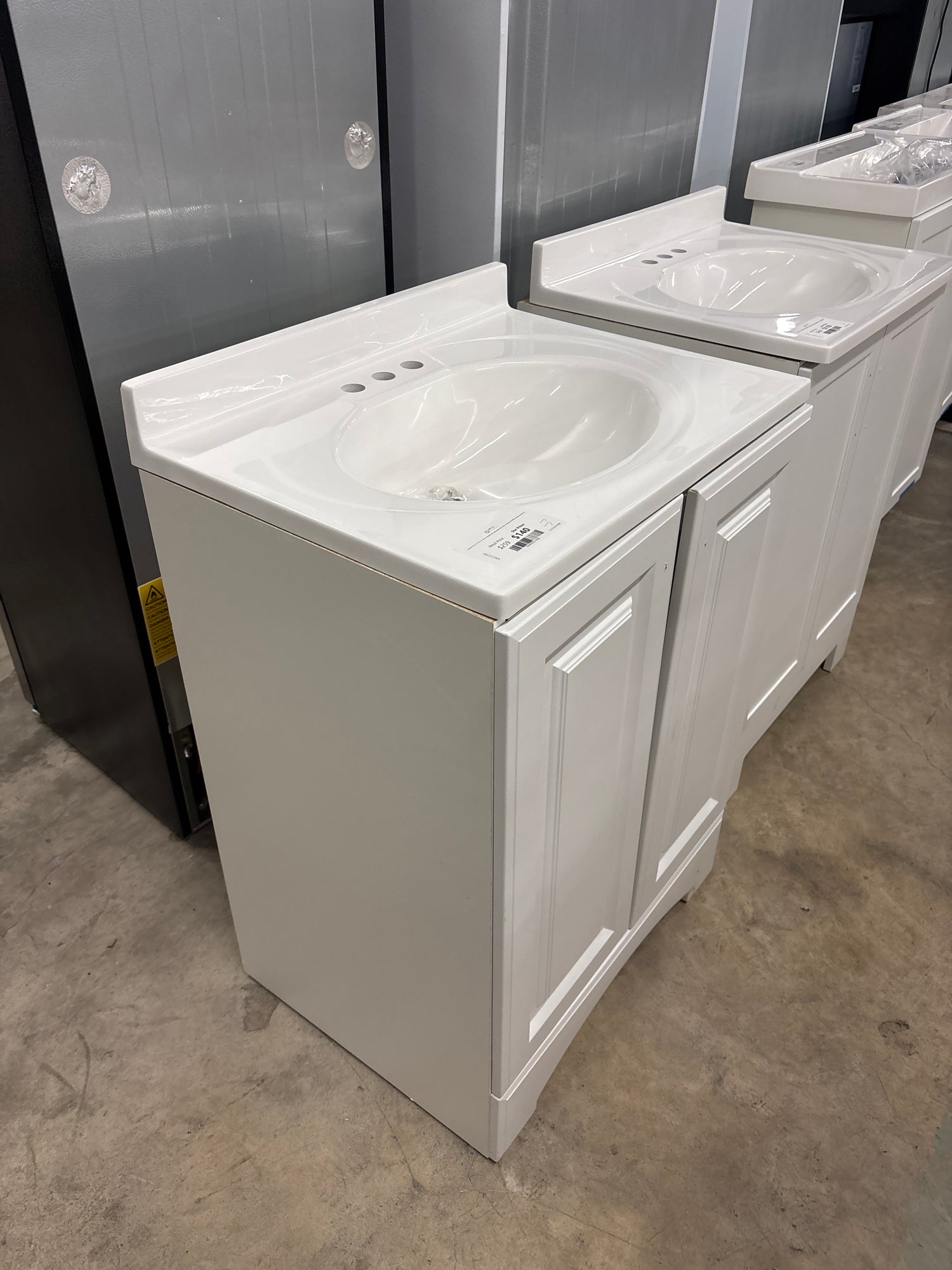 Everdean 25 in. W x 19 in. D x 34 in. H Single Sink Freestanding Bath Vanity in White with White Cultured Marble Top is backordered and will ship as soon as it is back in stock.