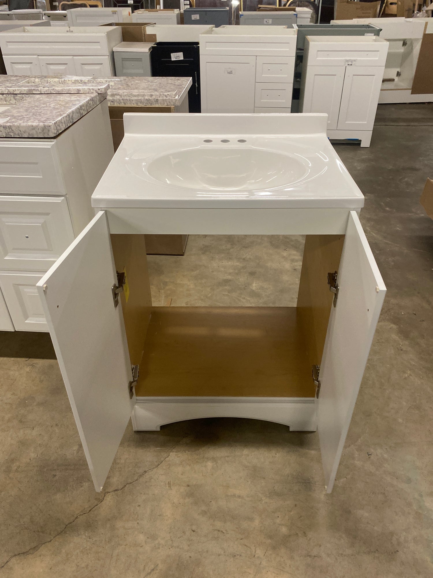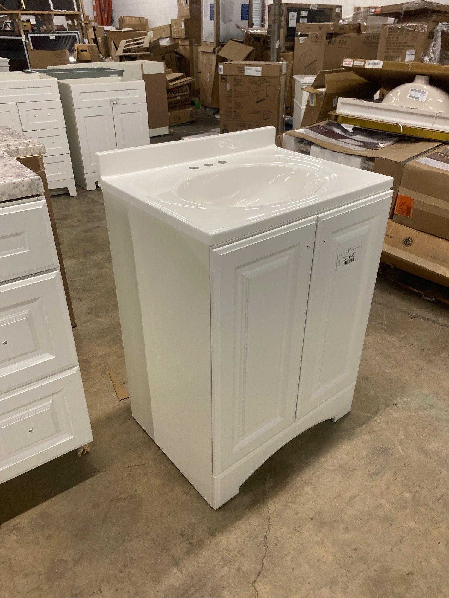 Everdean 25 in. W x 19 in. D x 34 in. H Single Sink Freestanding Bath Vanity in White with White Cultured Marble Top