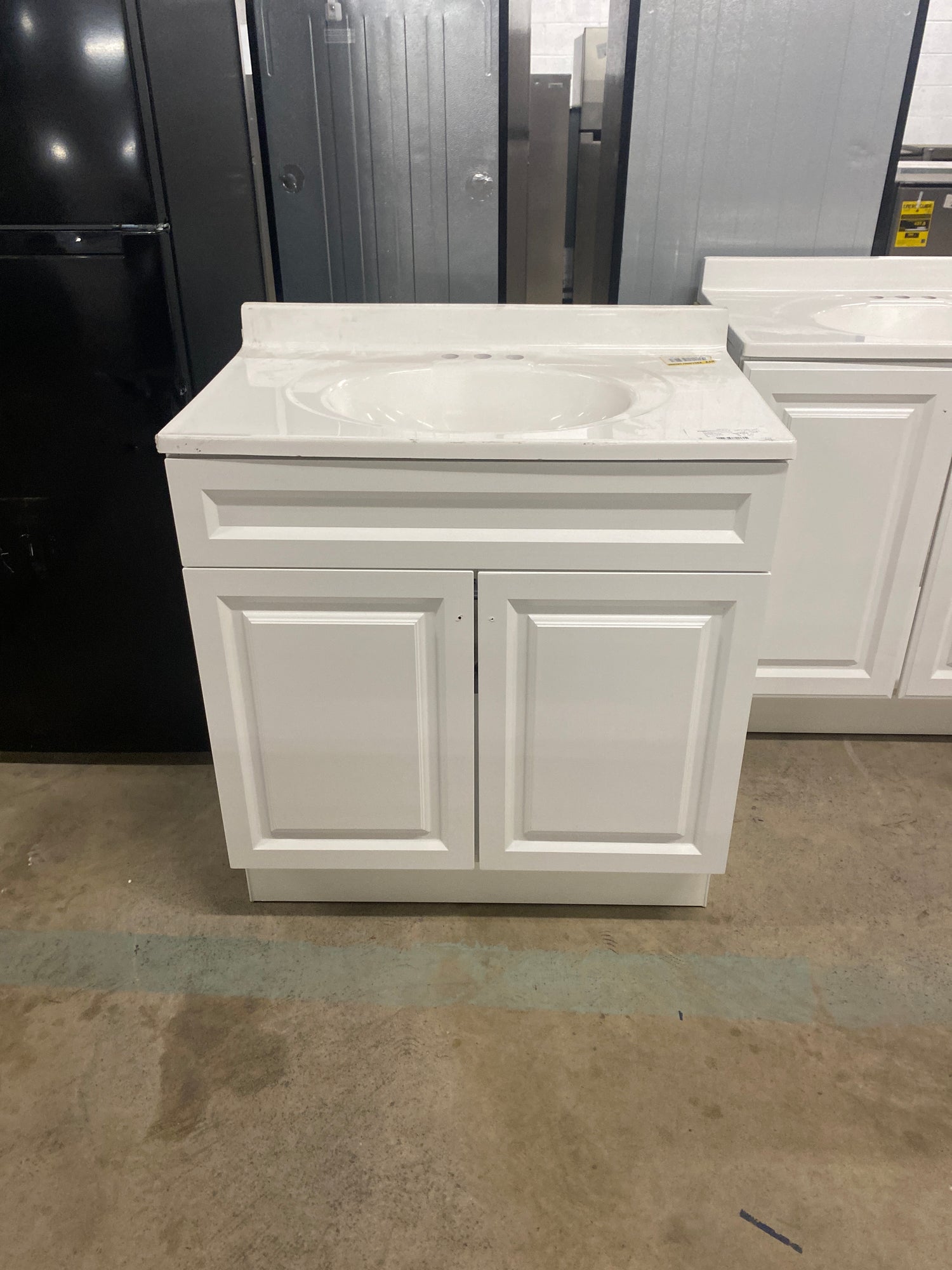 Glensford 30 in. W x 22 in. D x 34 in. H Bath Vanity Cabinet with Top in White is backordered and will ship as soon as it is back in stock.