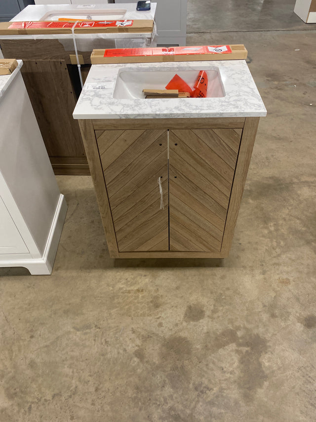 Huckleberry 24 in. W x 19 in. D x 34 in. H Single Sink Bath Vanity in Weathered Tan with White Engineered Marble Top is backordered and will ship as soon as it is back in stock.