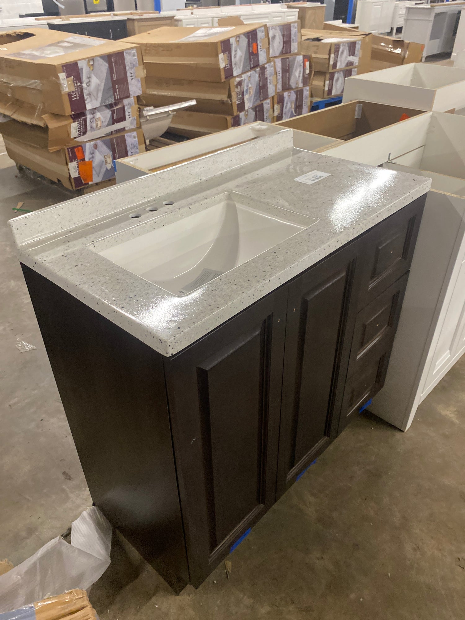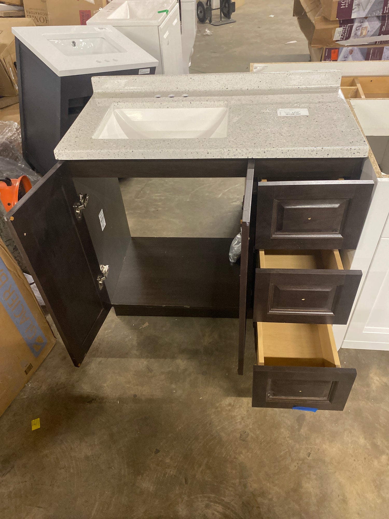 Northwood 37 in. W x 19 in. D x 38 in. H Single Sink Bath Vanity in Dusk with Silver Ash Engineered Solid Surface Top is backordered and will ship as soon as it is back in stock.