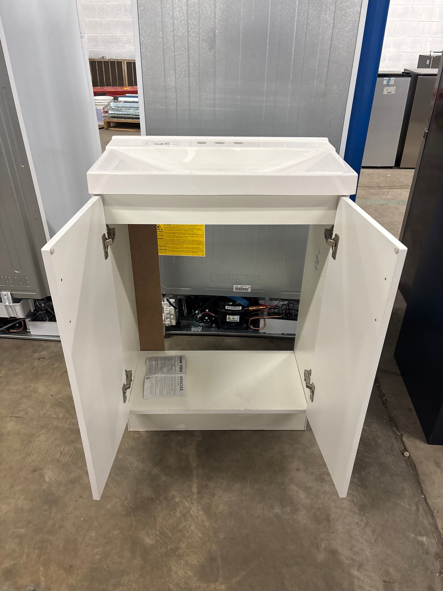 Penlee 25 in. Single Sink White Bath Vanity with White Cultured Marble Top (Assembled) is backordered and will ship as soon as it is back in stock.