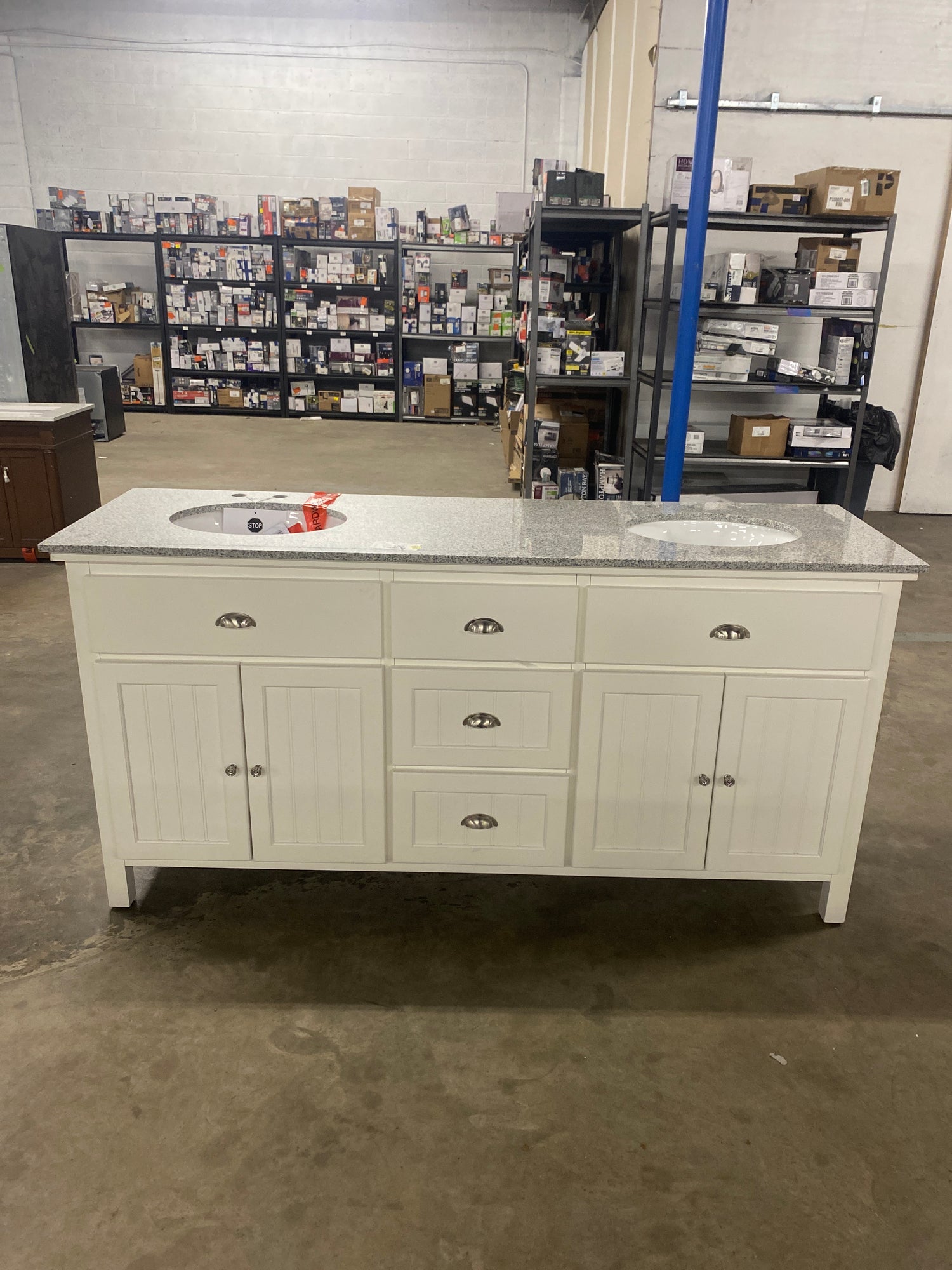 Ridgemore 71 in. Double Sink White Bath Vanity with Gray Granite Top (Assembled) is backordered and will ship as soon as it is back in stock.