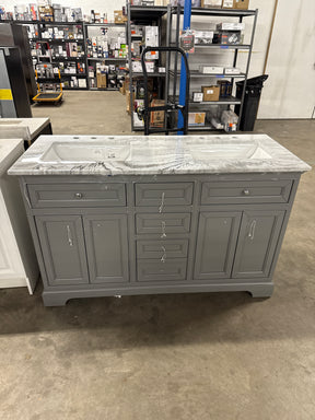 South Bay 55 in. Double Bath Vanity in Gray with Epoxied Marble Vanity Top in Carrara White with White Basin is backordered and will ship as soon as it is back in stock.