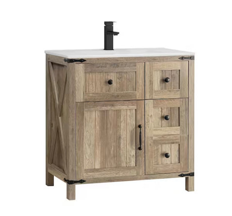 Woodbrook 31 in. Single Sink White Washed Oak Bath Vanity with White Cultured Marble Top (Assembled)