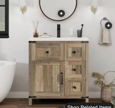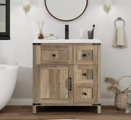Regular price $220.00Unit priceUnavailableVery low stock (1 unit)30 in. Bath Vanity Cabinet without Top in Brown with White Ceramics Drop-in Sink
