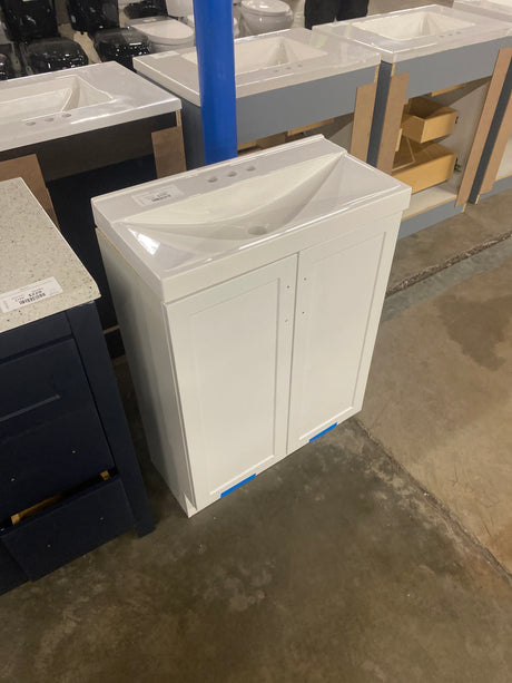 Penlee 25 in. Single Sink White Bath Vanity with White Cultured Marble Top (Assembled)