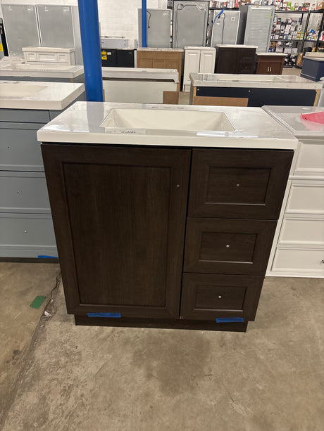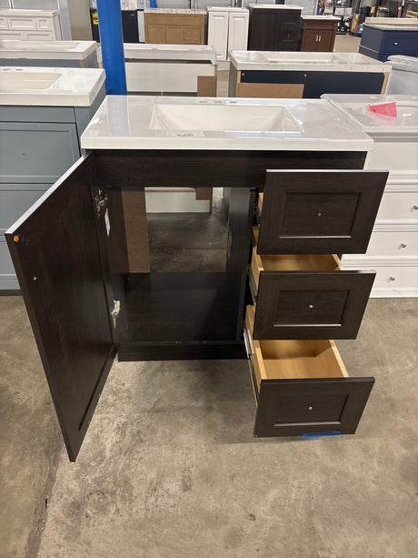 Hanna 30 in. Single Sink Weathered Tan Bath Vanity with White Engineered Stone Top (Assembled)