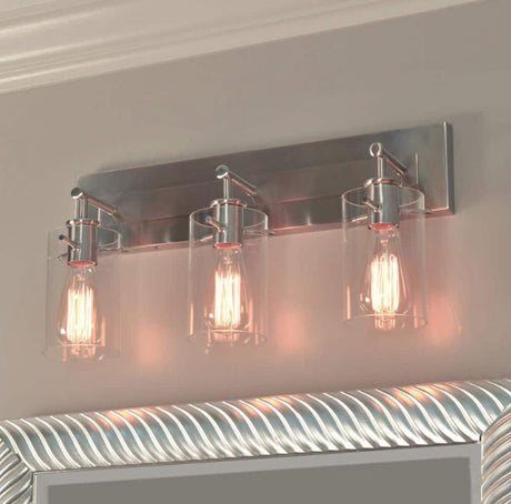 $60.00Unit price /UnavailableVery low stock (2 units)Regan 21 in. 3-Light Brushed Nickel Bathroom Vanity Light with Clear Glass Shades