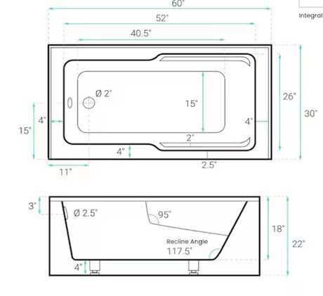 $335.00Unit price /Unavailable Aloha Plus 60 in. Left Drain Rectangular Alcove Soaking Bathtub in White