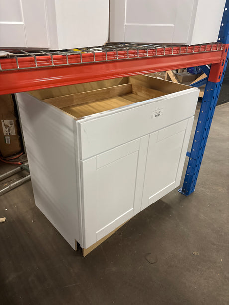 Westfield Feather White Assembled Sink Base Kitchen Cabinet (36 in. W x 23.75 in. D x 35 in. H)