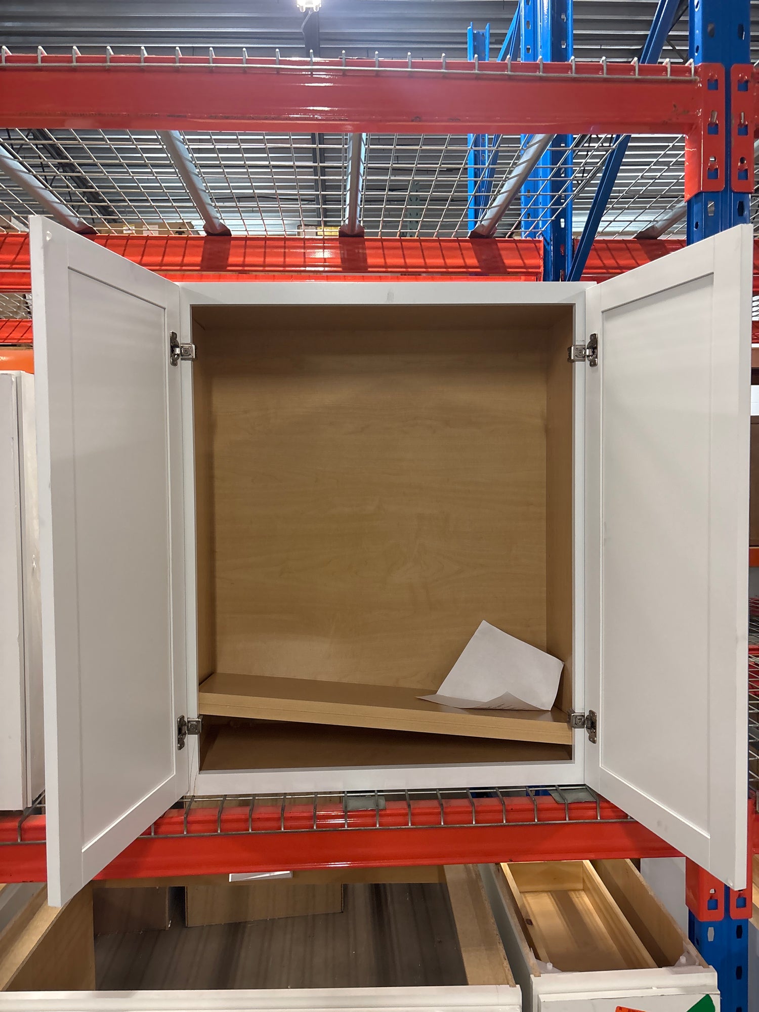 Courtland Polar White Finish Laminate Shaker Stock Assembled Wall Kitchen Cabinet 30 in. x 36 in. x 12 in. is backordered and will ship as soon as it is back in stock.