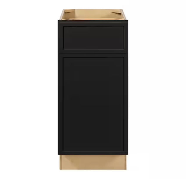 Leyton 15 in. W x 24 in. D x 34.5 in. H Ready to Assemble Plywood Slim Shaker Base Kitchen Cabinet in Raven Black