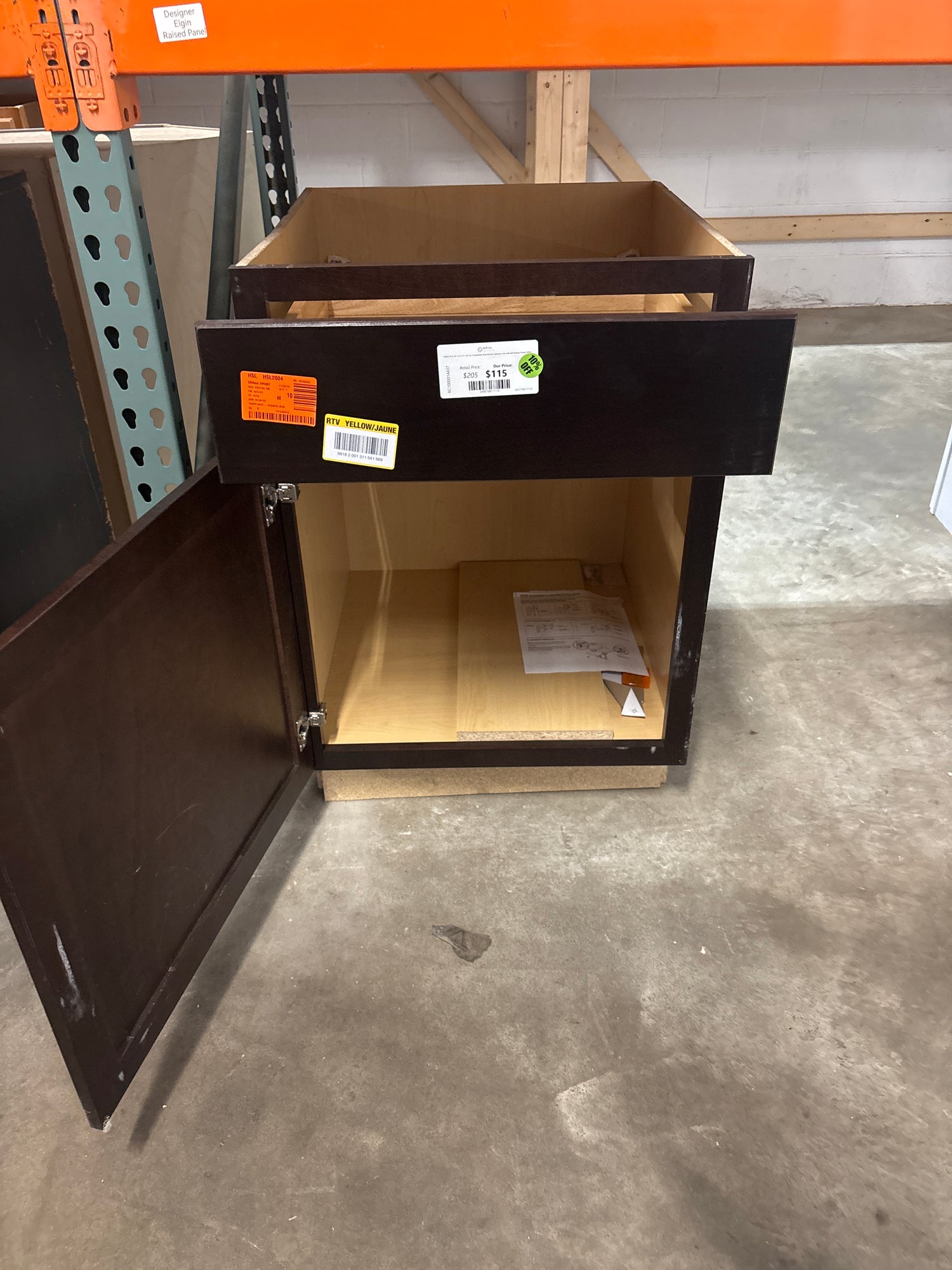 Shaker 24 in. W x 24 in. D x 34.5 in. H Assembled Base Kitchen Cabinet in Java with Ball-Bearing Drawer Glides is backordered and will ship as soon as it is back in stock.