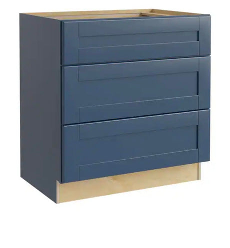 Regular price $155.00Unit priceUnavailableVery low stock (1 unit)Shaker 30 in. W x 24 in. D x 34.5 in. H Assembled 3 Drawer Base Cabinet in Dove Gray