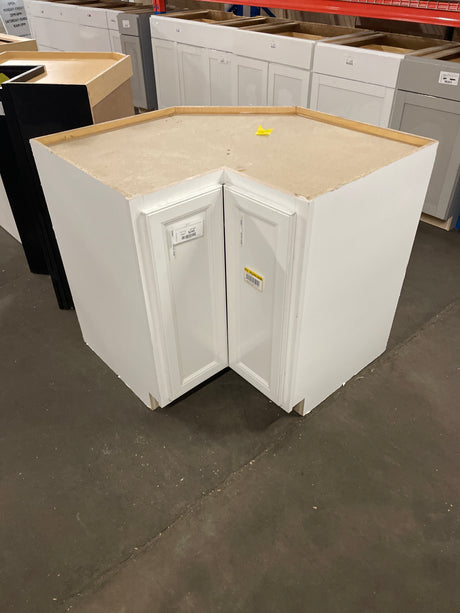 36 in. W x 24 in. D x 34.5 in. H Assembled Raised Panel Lazy Susan Corner Base Cabinet in White