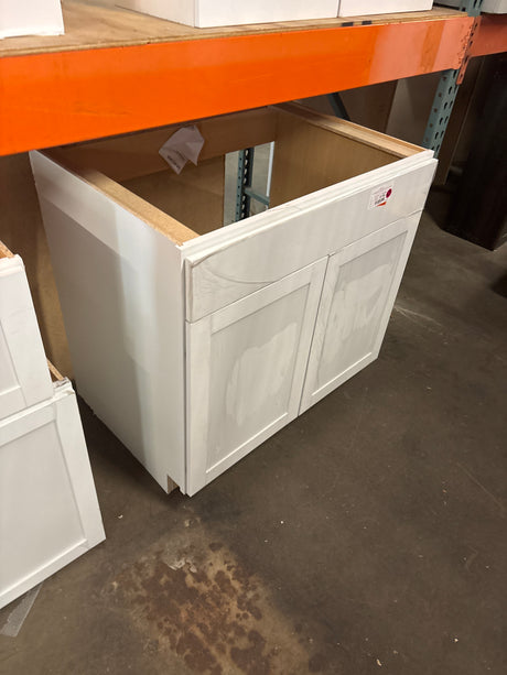 Westfield Feather White Assembled Sink Base Kitchen Cabinet (36 in. W x 23.75 in. D x 35 in. H)