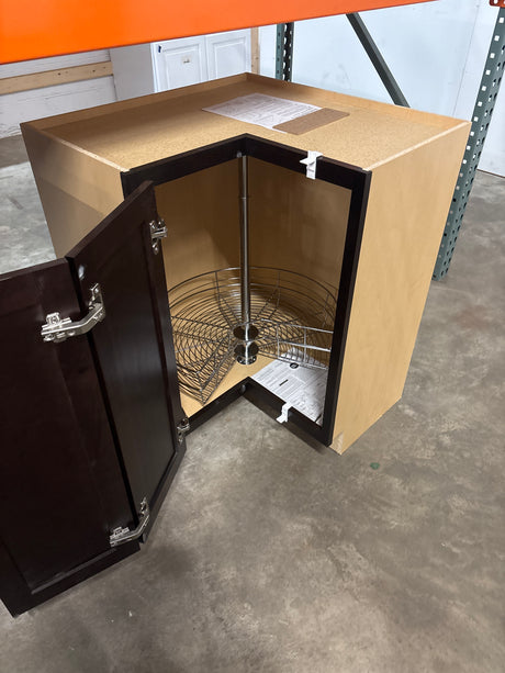 Shaker 28.5 in. W x 16.5 in. D x 34.5 in. H Assembled Lazy Susan Corner Base Kitchen Cabinet in Java
