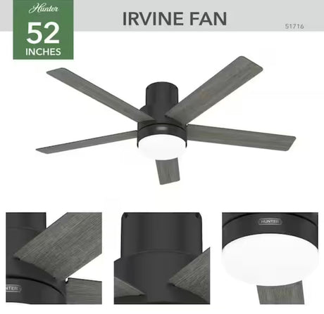 Irvine 52 in. Indoor Matte Black Ceiling Fan with Remote and Light Kit