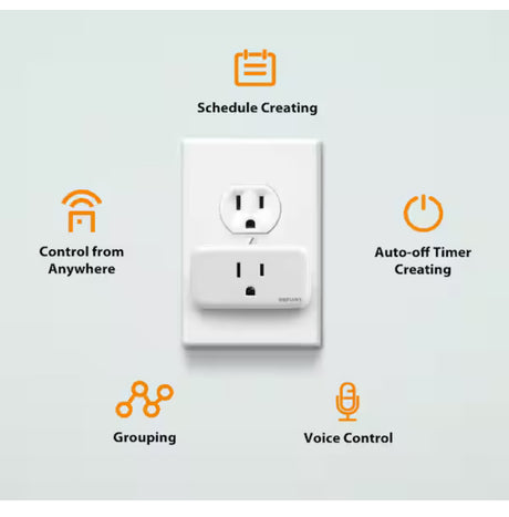 $10.00Unit price /UnavailableVery low stock (1 unit)15 Amp 120-Volt Indoor Smart Plug & Timer Wi-Fi Bluetooth Single Outlet Powered by Hubspace (2-Pack)