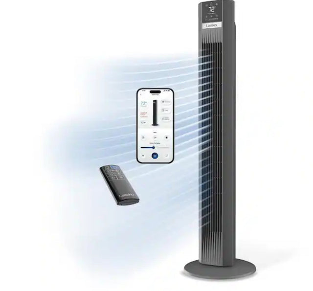 Xtra Air 48 in. 12-Speed Smart Tower Fan in Gray w/ DC Motor, Works w/ Alexa, Google, Whisper Quiet, Remote, 12 in. Dia is backordered and will ship as soon as it is back in stock.
