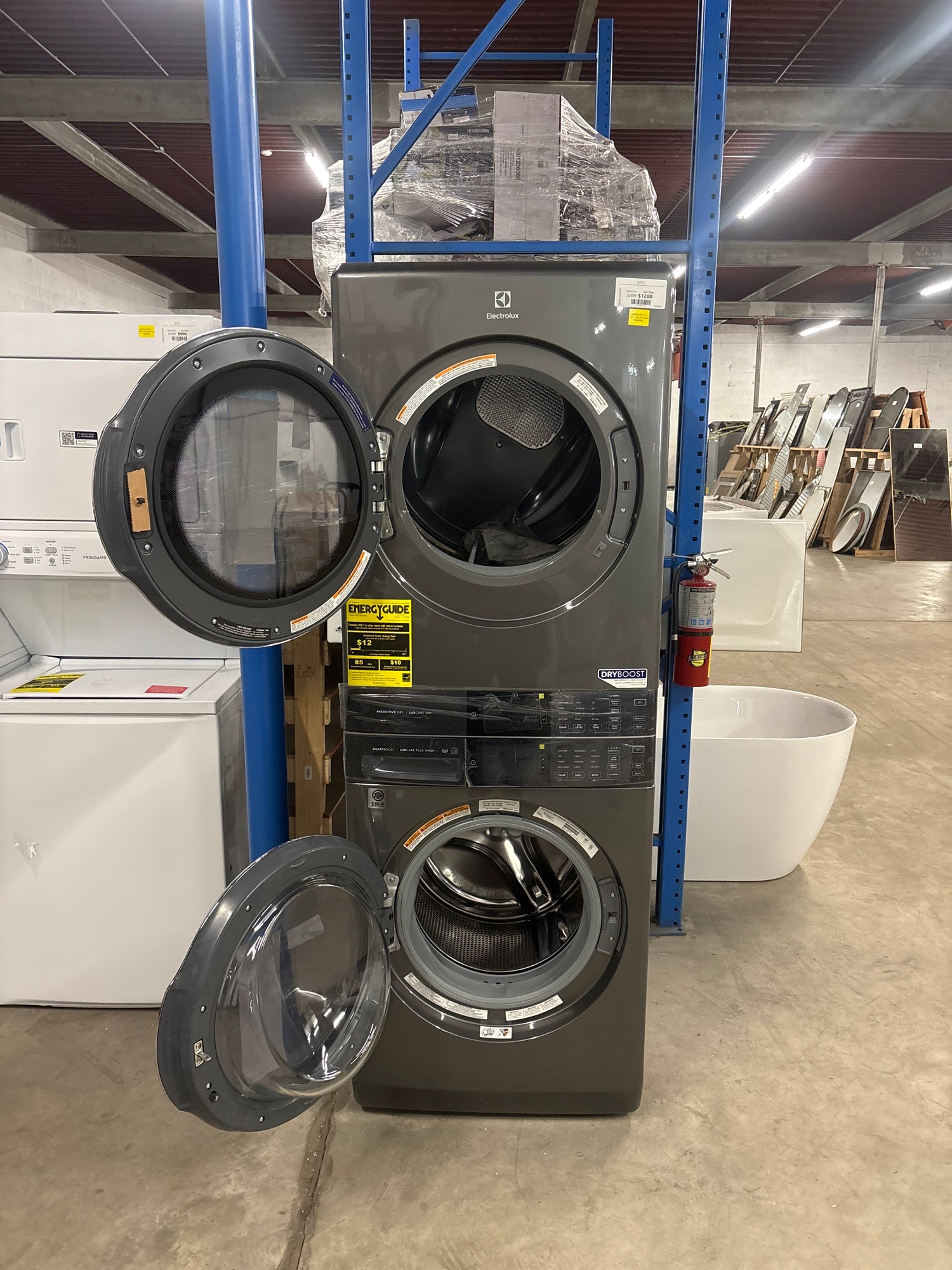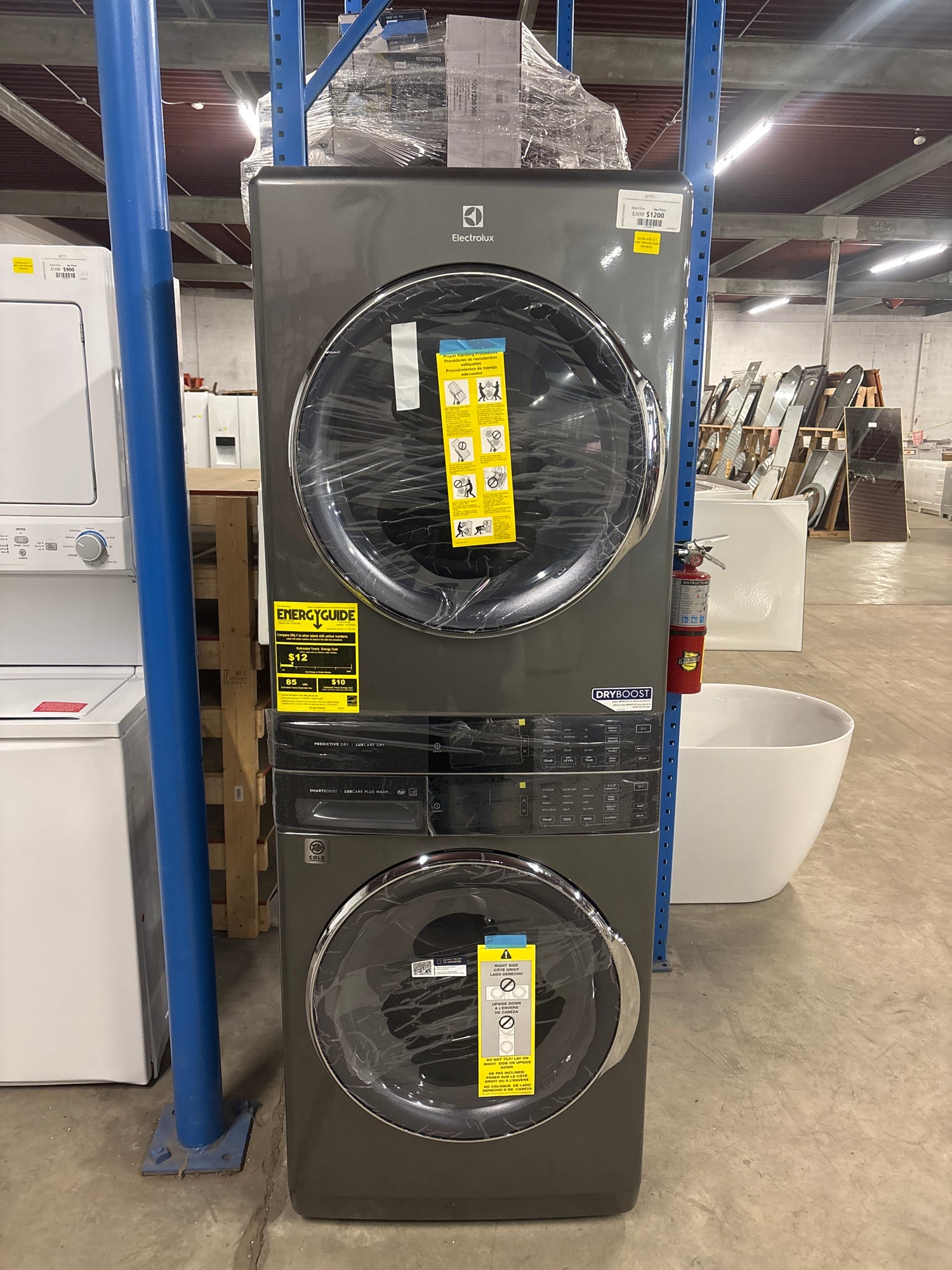 4.5 cu. ft. Stacked Washer and 8.0 cu. ft. Electric Dryer Laundry Tower in Titanium, SmartBoost Premixing, Energy Star