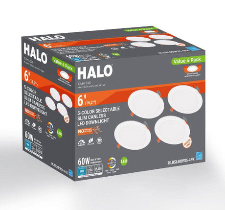HLBSL 6 in. Canless Integrated LED, 900 Lumens, 5CCT, White (4-Pack)