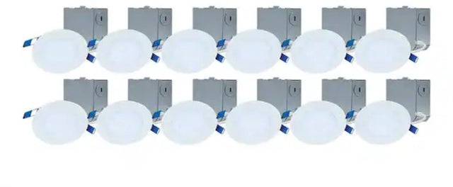 HLBE 4 in. Ultra-Thin Downlight 3000K Fixed CCT New Construction/Remodel Integrated LED Recessed Light Kit 12PK