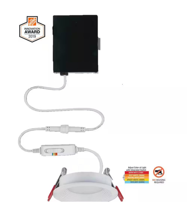 Slim Baffle 3 in. Adjustable CCT Canless New Construction & Remodel IC Rated Indoor/Outdoor LED Recessed Light Kit