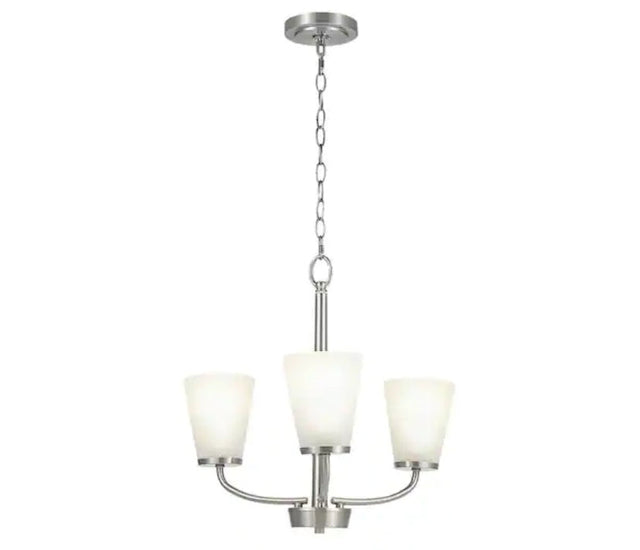 Helena 19 in 3-Light Brushed Nickel Hanging Chandelier with Frosted Glass Shades for Dining Room