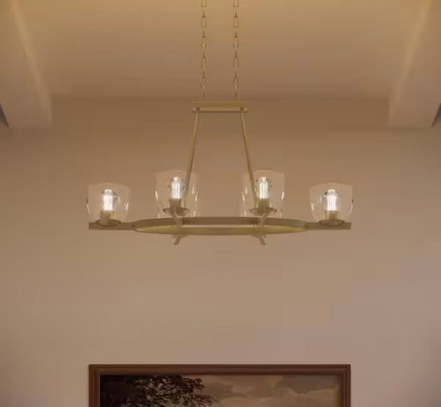 Tamassee Collection 6-Light Brushed Gold Updated Traditional Linear Chandelier with Clear Glass Shades for Dining Room