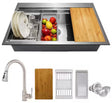 Handmade All-in-One 30 in. x 22 in. Drop-in Single Bowl Stainless Steel Workstation Kitchen Sink with Pull-down Faucet