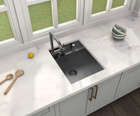 Zero Radius 15 in. Undermount 18G Gunmetal Black Stainless Steel Single Bowl Workstation Bar Sink with Folding Faucet