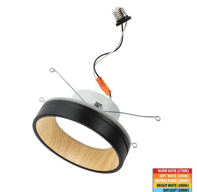 6 in. Retrofit Matte Black White Oak Accent Integrated LED Recessed Light Trim Night Light Feature Adjustable CCT