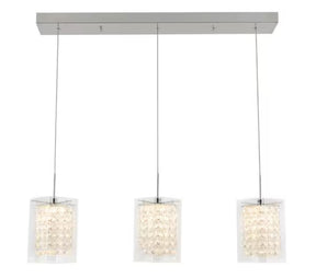 Crystal Cube 13-Watt 3 Light Chrome Modern Integrated LED Pendant Light Fixture for Dining Room or Kitchen
