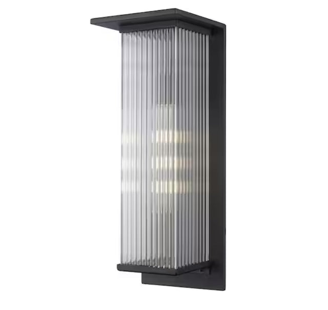 Jardine 20 in. 1-Light Black Modern Outdoor Wall Light Fixture with Clear Ribbed Glass is backordered and will ship as soon as it is back in stock.