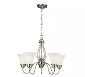Kensley Park 5-Light Classic Traditional Brushed Nickel Hanging Candlestick Chandelier with Frosted White Shade
