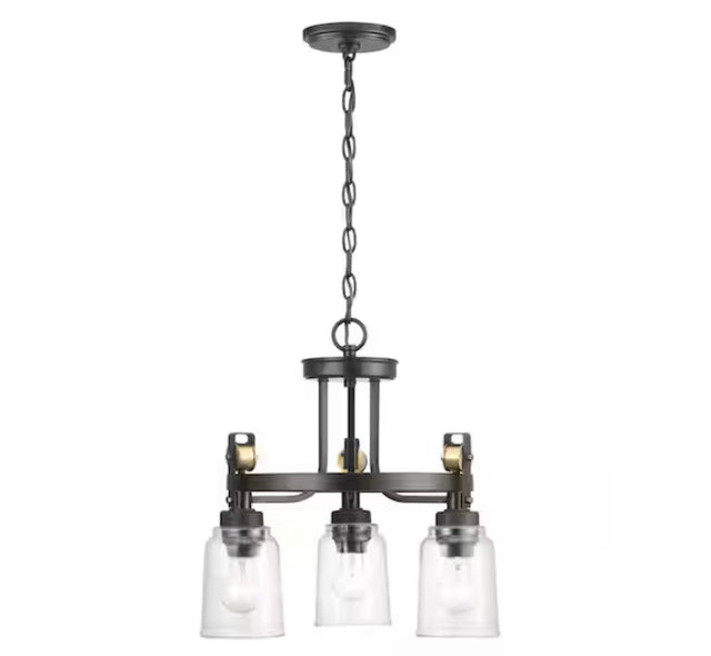 Knollwood 17-1/2 in. 3-Light Black Bronze with Brass Accents Industrial Round Chandelier for Kitchens Bulbs Included