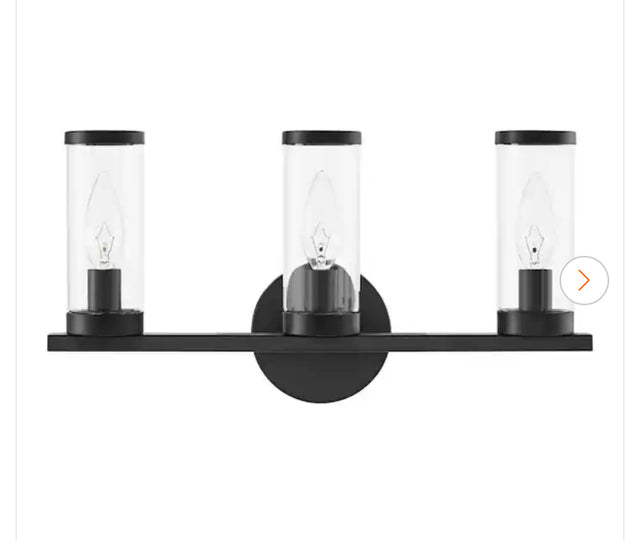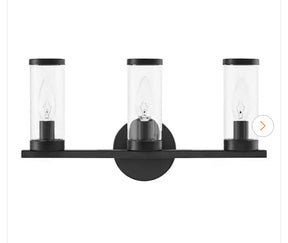 Loveland 16.625 in. 3-Light Black Bathroom Vanity Light Fixture with Clear Glass Shades is backordered and will ship as soon as it is back in stock.