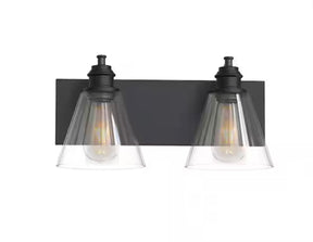 Manor 15.375 in. Width 2-Light Vanity Light Matte Black Finish Clear Glass Shades