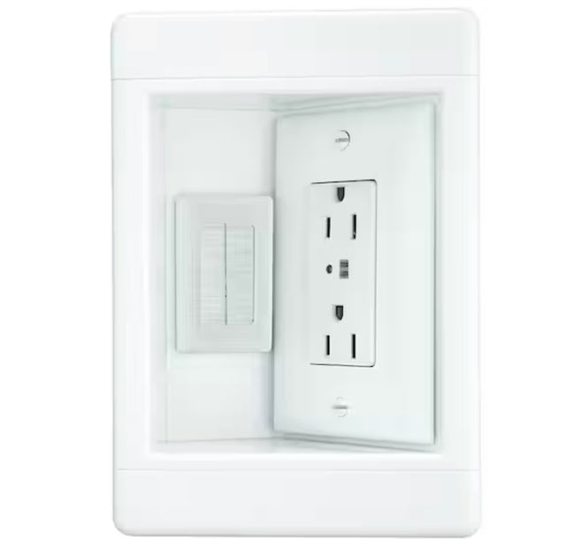 Pass & Seymour 1 Gang Recessed TV Media Box Kit with Surge Suppressing Outlet and Low Voltage Inserts, White
