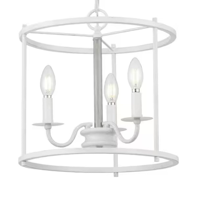 Somstreet 13.75 in. 3-Light Cottage White Cage Pendant Light with Bleached Oak Accents