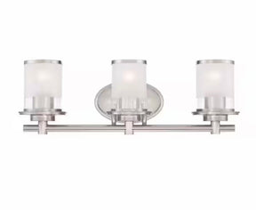 Truitt 23.25 in. 3-Light Brushed Nickel Modern Transitional Vanity with Frosted and Clear Edge Glass Shades