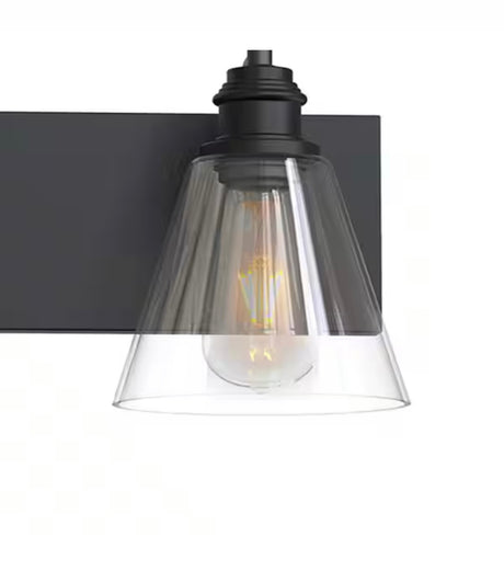 Manor 15.375 in. Width 2-Light Vanity Light Matte Black Finish Clear Glass Shades